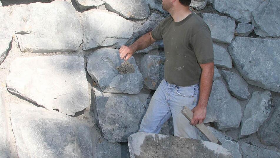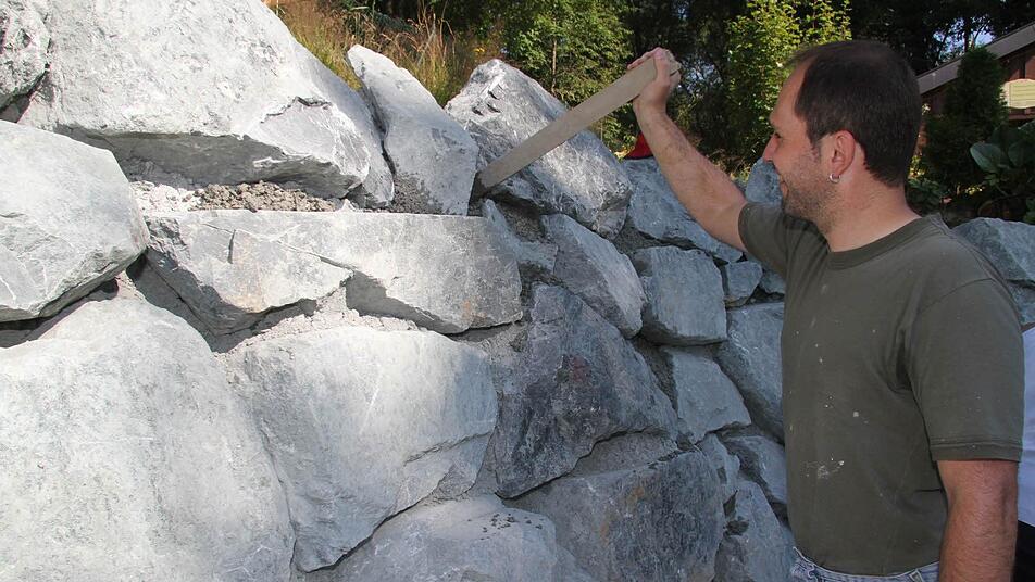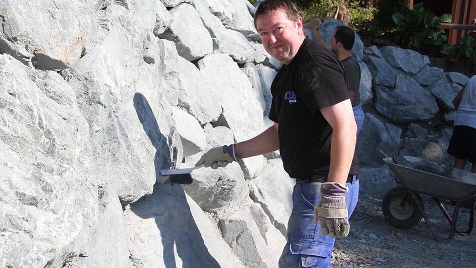 Der ehemalige Hang wurde mit Wasserbausteinen aus Diabas befestigt. André Hümmer und viele weitere freiwillige Helfer haben zu Kelle, Schaufel und Mörtel gegriffen.