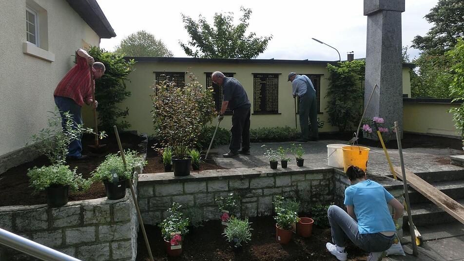 Mit gutem Beispiel geht immer wieder der Gartenbauverein voran, der sich um öffentliches Grün kümmert. Neueste Aktion: Die Umgestaltung des Kriegerehrenmals auf dem Friedhof. Der Efeu hatte dort ganze Arbeit geleistet und alles über- und durchwuchert. Nach Rücksprache mit dem Kreisgartenfachberater Friedhelm Haun wurde das Areal nun gründlich gesäubert, der Efeu entfernt und die Fläche mit neuen Anpflanzungen versehen. Der Ludwigschorgaster Bauhof arbeitete kräftig zu und versah unter anderem die Mauer mit den vier Gedenktafeln mit einem neuen Anstrich.