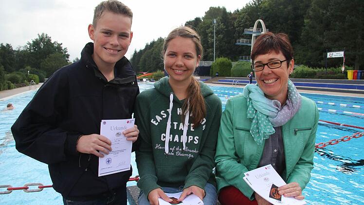 Sie sind da, wenn in Notfällen schnelle Hilfe gebraucht wird: die Retter der Wasserwacht. Doch es gibt zu wenige, und deshalb möchten Gerhard Spindler und Walter Feyer, seit Mai das neue Führungsteam der Kulmbacher Ortsgruppe, andere Menschen fürs Retten begeistern. Mindestens bei vier Kandidaten ist das bereits gelungen: der 13-jährige Timo Zahn und seine Mutter Corinna sowie Sarah Battistella (18) erhielten am Samstag beim Tag der Wasserwacht ihre Rettungsschwimmabzeichen in Bronze und durften bei verschiedenen Vorführungen zeigen, was sie gelernt haben.