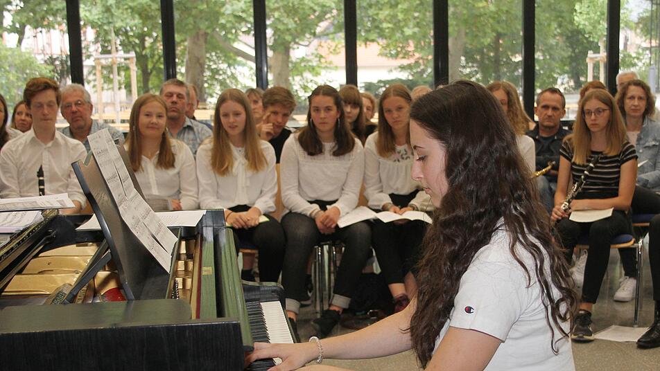 Den Auftakt machte der Chor unter der Leitung von Hubertus Baumann. Die Sänger machten Lust auf Gesang und Musik. Dann folgten beim Konzert die Auftritte der Solisten: Lucas Nützel traute sich als Erster mit der Trompete auf die Bühne. Er spielte "La Vaillance" von Georg Friedrich Telemann. Einen echten "Gassenhauer" der klassischen Musik trug Valerie Beßlein vor: ein Thema aus Johann Sebastian Bachs berühmten Brandenburgischen Konzert. Der Vortrag wurde zu etwas Besonderem, weil Valerie Beßlein das bekannte Thema auf dem Saxophon spielte.