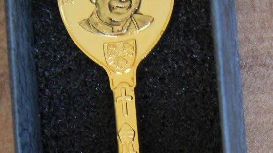 Der Ludwigschorgaster zeigt Zuckerlöffel mit Tauf- und Kommunionmotiven. Er hat einen goldenen Zuckerlöffel, auf dem das Bildnis vom lächelnden Papst Benedikt zu sehen ist.