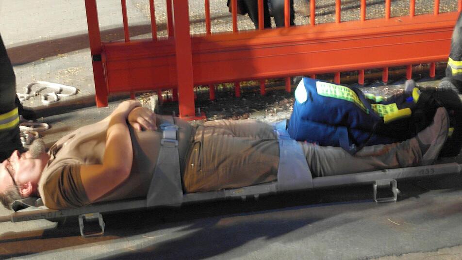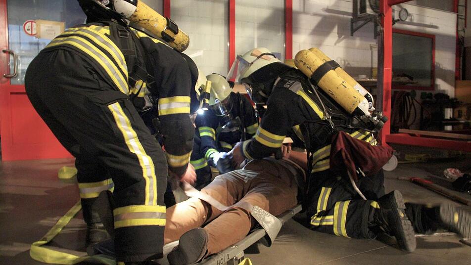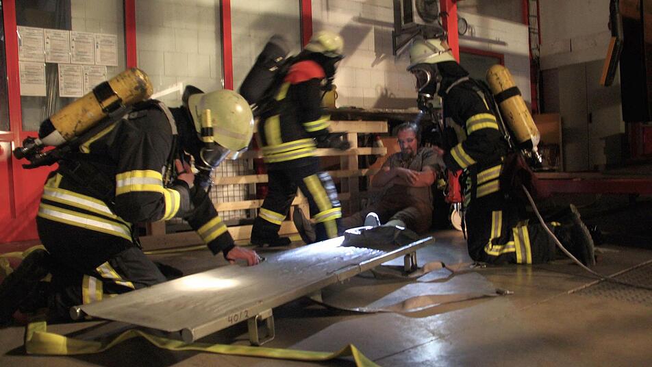 Doch bei der vierten Übung im Rahmen der Aktionswoche der bayerischen Feuerwehren geht es nicht nur um Sachwerte in der großen Brünierhalle, wo Stahlteile mit einer Schutzschicht gegen Korrosion versehen werden; es geht auch um Menschen. Genauer gesagt um einen, nämlich Bernd Dörnhöfer. Der Geschäftsführer, der sich sofort auf die Suche nach dem Brandherd begeben hat, wird von einem herabstürzenden Deckenelement getroffen und verletzt. Seine Mitarbeiter, die alle das Gebäude unversehrt verlassen können, wissen nicht, dass der Mann hilflos in der Halle liegt. Reiner Baumann, der sich mit weiteren Kollegen um den Brandschutz in der Firma kümmert und selbst Aktiver der Kulmbacher Feuerwehr ist, meldet seinen Chef als vermisst.