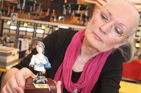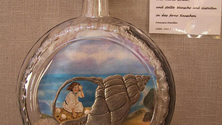 Mehrere Wochen für eine Figur Oben auf der Bühne versinkt indes Suzanne Plédavent-Zahajko in ihre eigene Welt. Sie reißt ein Taschentuch in Streifen, tupft einen Pinsel, der nur aus wenigen Haaren besteht, in Farbe, streift einen Teil der Farbe wieder ab und zaubert aus den Rohlingen Kunstwerke. Dabei verwendet sie eine Lupe, denn sonst sind die Feinheiten gar nicht zu bewerckstelligen.