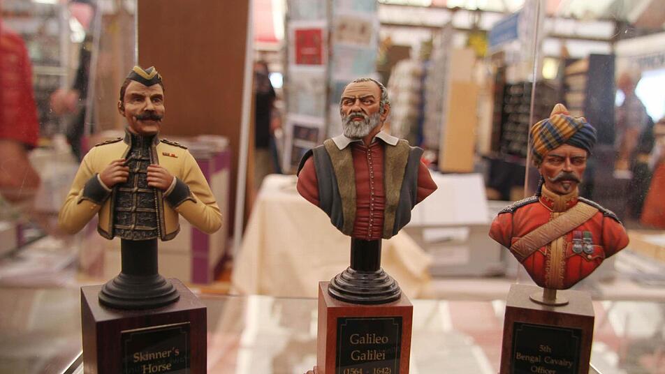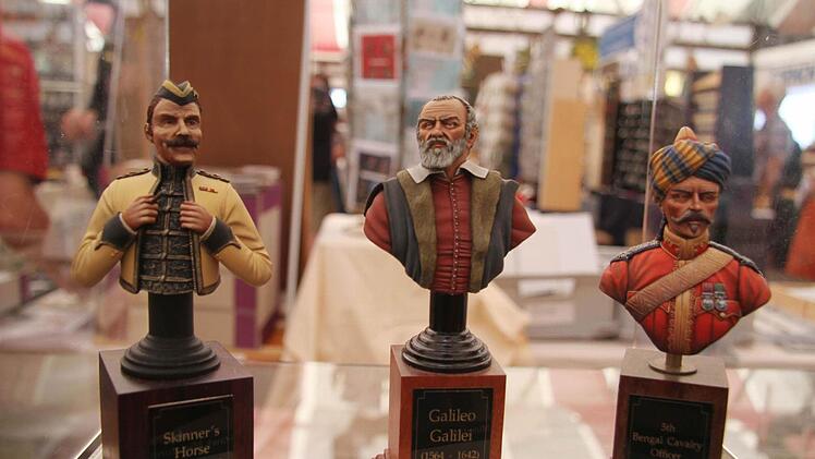Natürlich gibt es viele Stände auf der Börse, die sich mit Geschichte beschäftigen: Soldaten, Reiter, geschichtsträchtige Personen. In allen Größen und Formen gibt es die Figuren. Manche sind vollplastisch und stattlich groß, andere wieder sind so winzig klein, dass in eine Streichholzschachtel ein ganzes Diorama passt.