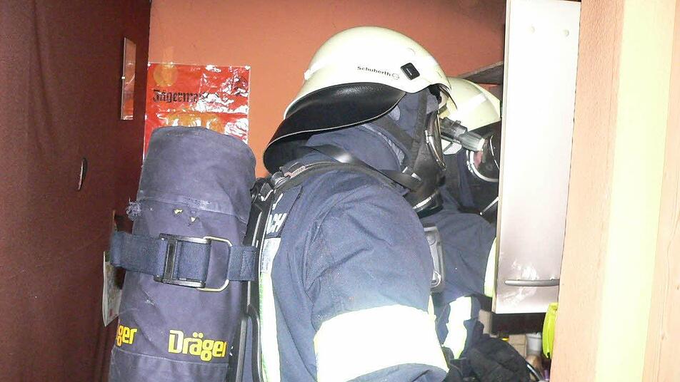 Gegen den Schwelbrand mit starker Rauchentwicklung setzte die Feuerwehr - die Einsatzleitung hatten Kreisbrandinspektor Thomas Limmer und Stadtbrandmeister Michael Weich - zwei Trupps mit Schwerem Atemschutz ein. Sie drangen zum Brandherd in der Küche vor, wo die Küchenzeile schon völlig verkohlt war. Nachdem der Brand gelöscht war, wurden die Wohnung und das komplette Treppenhaus mit Hilfe eines Hochleistungslüfters entraucht.