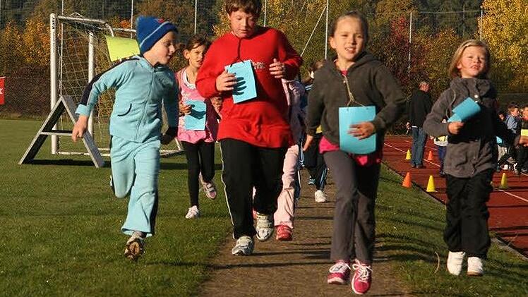 "Wir möchten Experimentierkästen anschaffen. Die kosten sicherlich so 1500 Euro", erklärte Schulleiterin Kathrin Sigg. Insgesamt beteiligten sich 134 Schüler an dem Sponsorlauf. Und sie legten 1589 Runden zu je 350 Metern zurück, staunte auch Organisator Wolfgang Weiß über den Ehrgeiz der Schüler. Schon vorher hatte er mit den Schülern die Stempeltische und die Sponsorbanden aufgebaut.