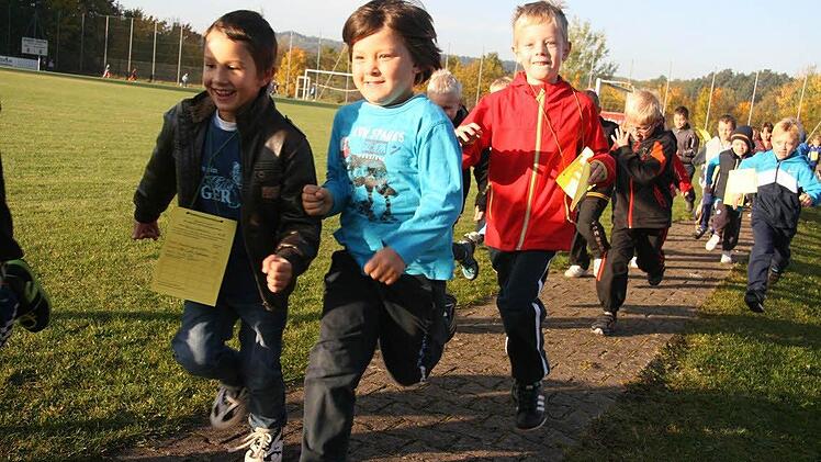 Einige baten die Eltern, andere schwärmten noch weiter aus. Lea Krüger zum Beispiel konnte das Baugeschäft Popp und die Firma Schorsch Kraftfahrzeugtechnik als Sponsoren gewinnen. Für jede absolvierte Runde sicherten die beiden Unternehmen zwei Euro zu. "Ich will schon zwei Runden schaffen", hat sich Lea vorgenommen und spurtet mit Volldampf los.