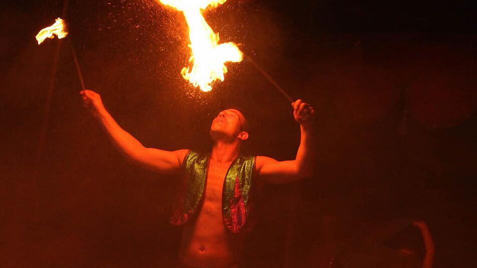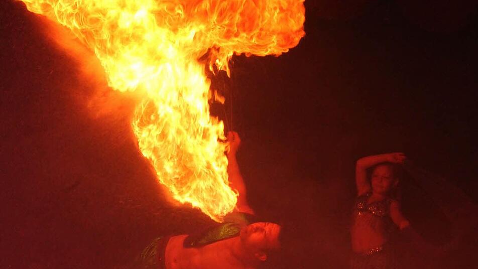 Aladdin kam mit einer kleinen Helferin auf die Bühne und präsentierte Feuerkunststücke der Extraklasse. Die Los Mexicanos ließen Messer der verschiedensten Art fliegen und zeigten Lassokunst.