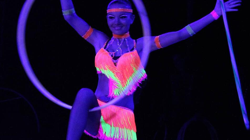Doch im Moskauer Zirkus gab es noch mehr zu sehen: Ein Clown sorgte für Späße, es gab ein Hula-Hoop-Girl, das die Reifen im Schwarzlicht tanzen ließ. Aleksandra turnte auf dem französischen Seil und präsentierte Luftnummern.