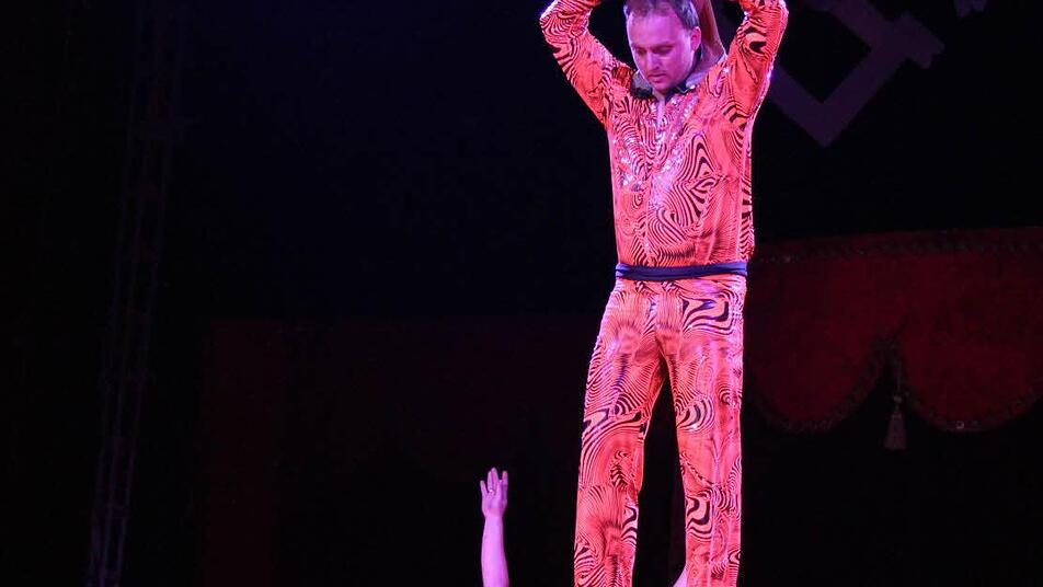 Und absolut bestaunenswert war auch der 19-jährige Aleksandr. Er zeigte Handstandakrobatik, blieb minutenlang auf den Händen oder gar nur auf einer Hand stehen, im Kopfstand, in den unglaublichsten Posen. Für diese Nummer ist einzigartige Körperbeherrschung die Voraussetzung und jahrelanges Training.
