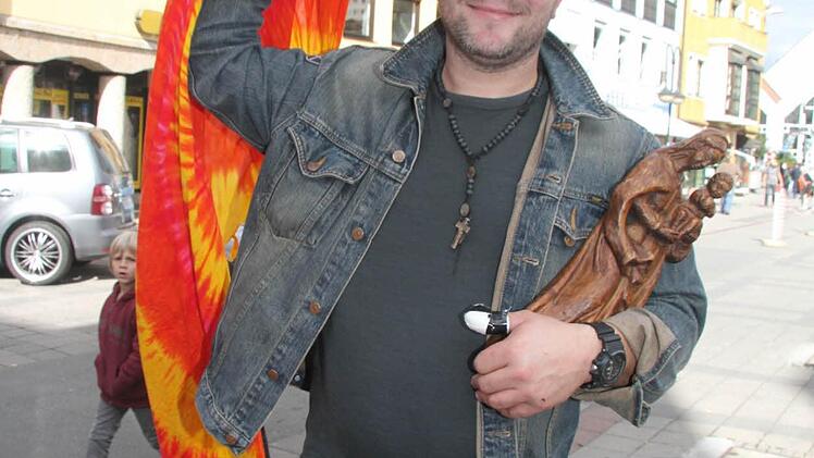 Lange hat Gerrit Günther aus Marktschorgast nicht gebraucht, um alles, was er sich gewünscht hat, zu bekommen. Auf dem Zentralparkplatz her er eine hölzerne Maria mit Kind und ein buntes Tuch gekauft. "Die Madonna kommt in eine Felsenwand und beschützt dann die Leute, die im Goldbergsee baden", sagt er.