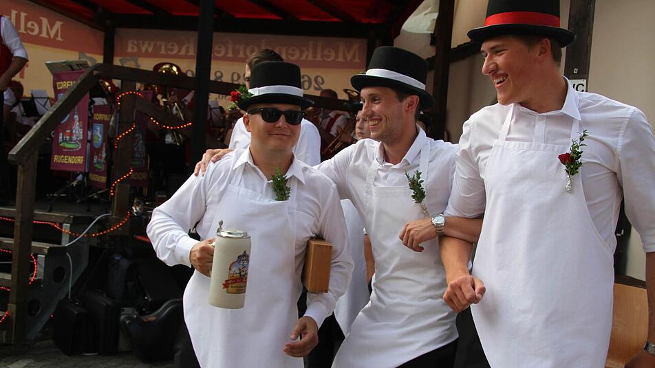 Als Oberplotzer fungierte in diesem Jahr Johannes Zimmermann. Doch er hatte natürlich, so wie es Tradition in Melkendorf ist, Helfer: den Weintablettträger Frank Stübinger und Kassierer Nikolai Schneider.