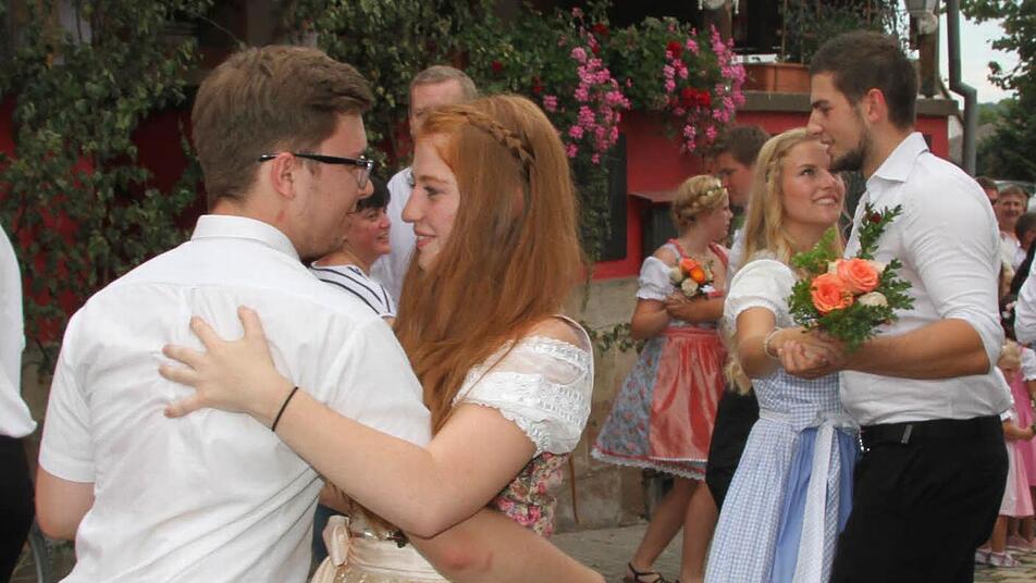 Getanzt wurde natürlich beim Abholen der Mädchen, aber auch vor der Gaststätte "Petersburch". Die Melkendorfer Jugend legte den Grundstein dafür, dass die Kerwatradition eine Zukunft hat, denn beim Festzug durften auch die Schulkinder. "Ich bin schon zum zweiten Mal dabei.