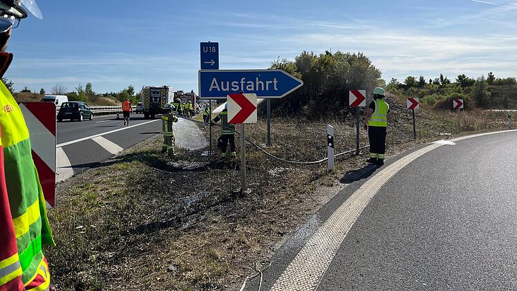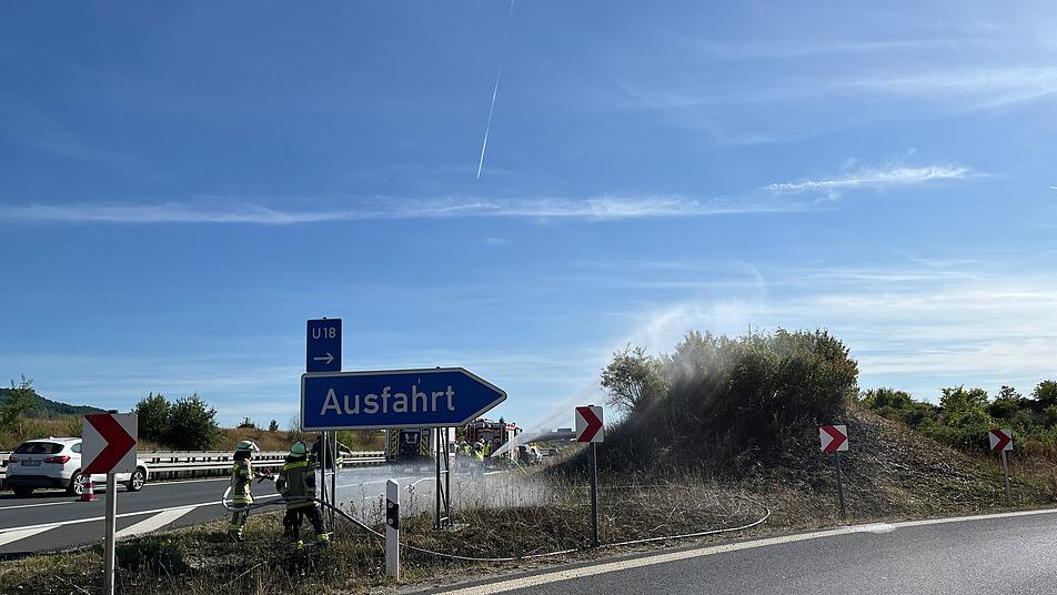 Die Polizei vermutet, dass es aufgrund einer Zigarettenkippe in Verbindung mit der Trockenheit zu einem Brand auf der A73 gekommen ist.
