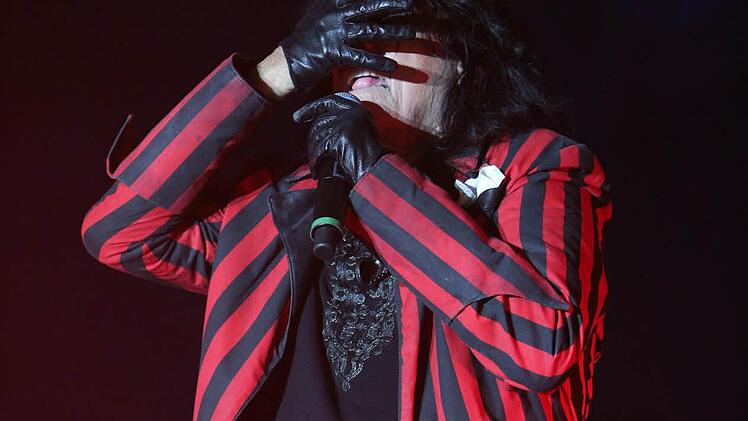 Flammen aus Schlagzeug-Sticks, Gitarre spielende Vampirinnen, Schlagzeug-Soli mit eingebauter Jonglage, ein gut vier Meter hohes Frankenstein-Monster auf der Bühne - Alice Cooper hatte seinen Auftritt in Lichtenfels. Momente, die durch strenge Richtlinie von Presse-Kameras aber leider nicht immer eingefangen werden konnten, hieß es doch, dass das Fotografieren nur während der ersten drei Lieder gestattet sei. So stand Cooper auf der Bühne, zerknittert und düster geschminkt wie eh und je, und ein Fan bemerkte: "Der hat sich in all den Jahren nicht verändert." 50 von diesen Jahren hat der Schock-Rocker als öffentliche Person schon hinter sich.