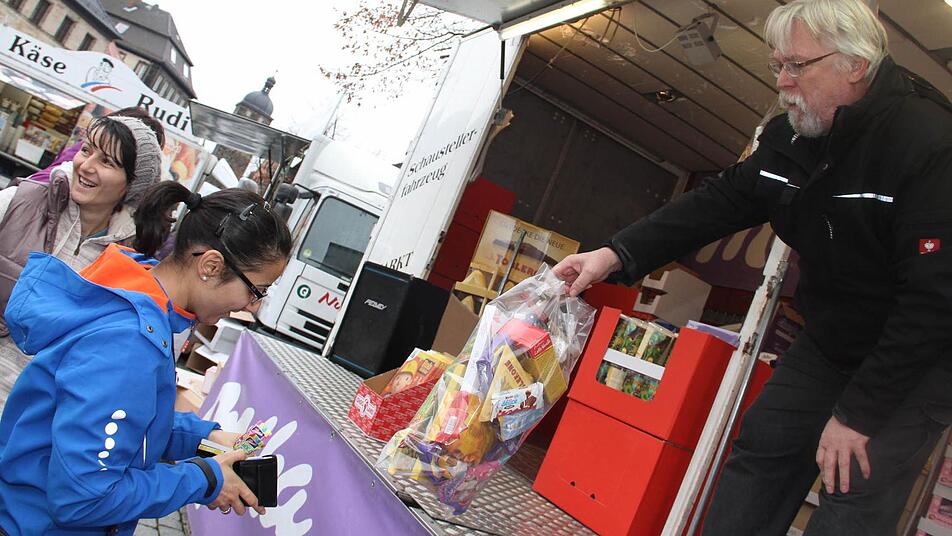 Thorsten Mey und seine Jungs sind gerne in Lichtenfels. Im Laufe der Jahre haben sie sich einen festen Kundenstamm erobert. Ihre Art, wie sie Wurst, Käse, Nudeln, Fisch und Süßwaren an den Mann oder die Frau bringen, kommt gut an. Und dass einmal die Ware ausgehen könnte, diese Befürchtung besteht nicht.