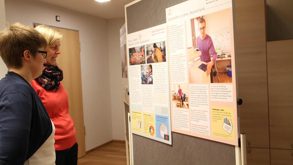 ImHeilpädagogischen Zentrum der Caritas wird in Lichtenfels auf Schautafeln präsentiert unter welchen Bedingungen Menschen weltweit in Lohn und Brot stehen.