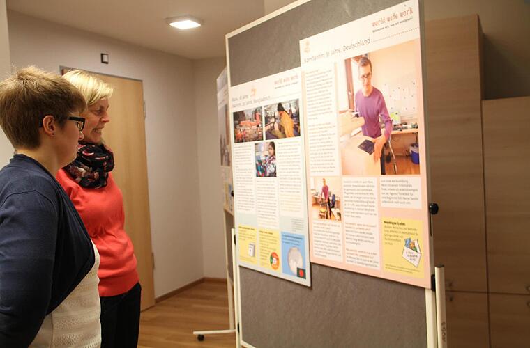 Im Mehrzweckraum der Außenwohngruppe 3 des Heilpädagogischen Zentrums der Caritas am Kirchplatz 3 ist noch bis 30. März die Wanderausstellung "world wide work - bekommen wir was wir verdienen?" der Essener Organisation "Behinderung und Entwicklungszusammenarbeit" zu sehen.