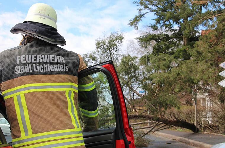 Bei keinem der Einsätze wurden Personen verletzt - manchmal durch sehr viel Glück: Wie bei der Frau in Lichtenfels, die auf der Viktor-von-Scheffel-Straße unterwegs war, als direkt hinter ihr ein Baum auf die Fahrbahn fiel.