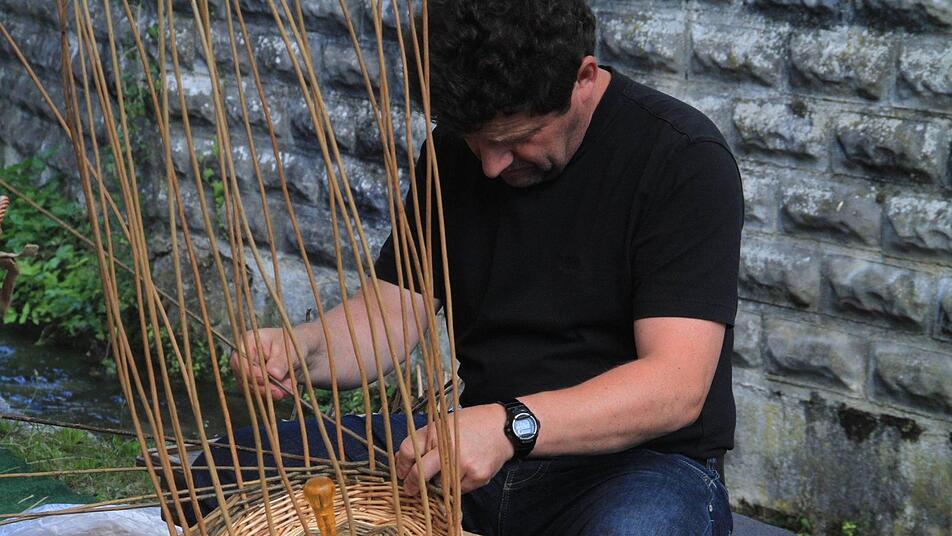 Am Stand des Korbflechters Oliver Kalb aus Schney kaufte sich eine 63-Jährige Berlinerin einen neuen Teppichklopfer. "Der hat sein Leben gelebt", sagte sie schmunzelnd über ihren bisherigen. Mit dem Ersatz wird die Frau auch künftig im Winter ihren Teppich im Schnee reinigen, wie sie erzählte.