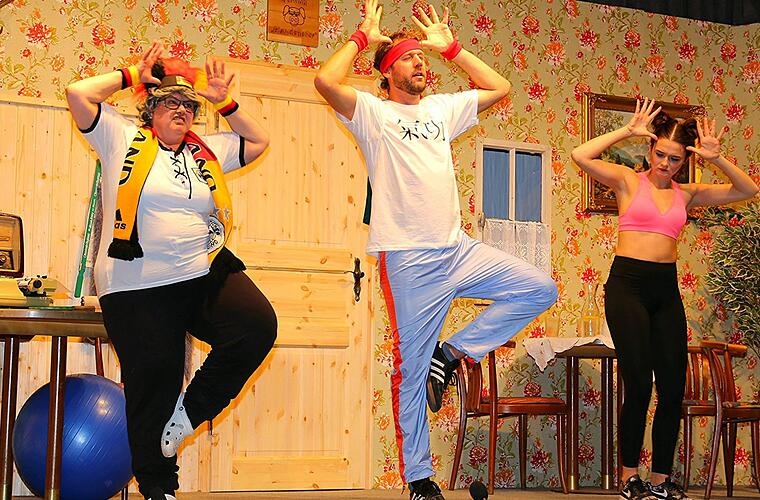 Edmund Welsch spielt in dem Stück den Chefkoch Paul, der mit seiner Frau seine in die Jahre gekommene Pension "Haudeneber" (Bühnenbild: Klauß Fischer und Dagmar Gick) zu einer "Wellnessoase mit Bauernhofcharakter" umgewandelt hat. Seitdem läuft das Geschäft richtig gut. Welsch spielt hinreißend knuffig ein Familienoberhaupt, das keines ist, weil seine Frau Helene das Zepter in der Hand hält - konsequent taff gespielt von Melanie Franke.