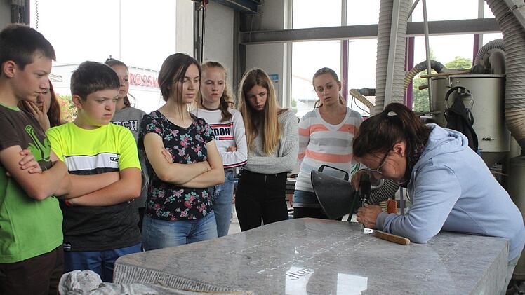 Jetzt hört er sich an, wie Ottfried Kerner vom Steinmetzbetrieb Kerner den Betrieb und das uralte Handwerk vorstellt. Marco, der in Redwitz in die siebte Klasse der Albert-Blankertz-Mittelschule geht, stellt Fragen und wägt ab. Soll er im Praktikum - das nächstes Jahr ansteht und für das die Schüler bei der ersten Job-Rallye Ideen sammeln - etwas mit Metall machen, als Landschaftsgärtner oder in der Obermaintherme arbeiten?