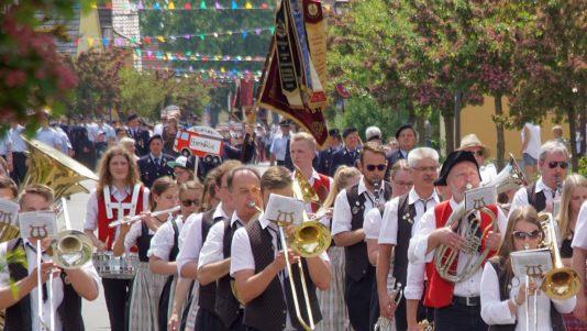 Sage und schreibe 136 Vereine mit rund 3000 Mitwirkenden zogen, bejubelt von zahlreichen Bürgern, durch die Straßen Ebensfelds. Schon die Aufstellung am Festplatz bot einen beeindruckenden Anblick. Dann ging es vorbei am entstehenden Feuerwehrhaus in Richtung Kreisel und von dort weiter über Hauptstraße, Oberbrunner Straße, Untere Straße und Himmelreichstraße. Weite Bereiche der innerörtlichen Festzugstrecke waren zur Feier des Tages mit quer über die Straße gespannten Girlanden geschmückt.