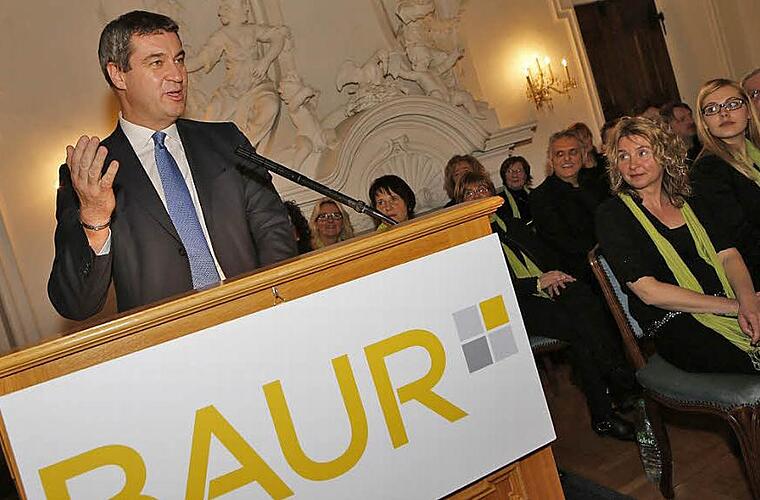 Wie wichtig es für ein Unternehmen wie Baur ist, die Dynamik zu halten, unterstrich Staatsminister Markus Söder (CSU). Er war mit 40-minütiger Verspätung gekommen und hatte ein Heimspiel in Banz: als Franke in Franken, am vertrauten Tagungsort, flankiert von Parteifreunden, unter denen man sich mit dem Vornamen anspricht. Anspielungen auf seine Aufsehen erregenden Faschingskostüme sowie Avancen auf das Amt des Ministerpräsidenten ließ er sich in lockerer Atmosphäre gern gefallen.