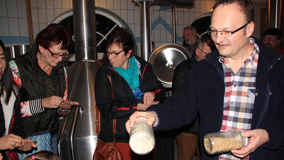 In lockerer Erzählweise mit etlichen fränkischen Sprüchen schilderte der Braumeister, was die Stammwürze eines Bieres ausmacht, wie eine längere Haltbarkeit erreicht werden kann und welchen Einfluss der kultivierte Schimmelpilz namens Hefe auf den Brauprozess hat. "Wir dürfen ja nicht brauen wie wir wollen, wir sind ans bayerische Reinheitsgebot gebunden", sagte Reinhold Reblitz und bekannte mit einem gewissen Stolz, dass es zur Berufsehre gehöre, diesem 1516 erlassenen Edikt zu folgen.