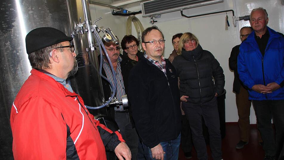 Aber weil Bier kein Heißgetränk ist, sondern kühl getrunken und gelagert wird, mussten sich die Gäste daraufhin warm anziehen. Es ging ins Sudhaus und in den Kühlkeller ("unser Schatzkästlein") des kleinen Brauhauses. Der Ausstoß von 500 Hektolitern jährlich wird fast ausschließlich im Brauereigasthaus ausgeschenkt. Die Biersorten wechseln im Jahresreigen - von Weißbier über Weizenbock bis Rauchbier, "Doldenzupfer" und Schwarzbier. Der Sud einer Sorte sei mengenmäßig so ausgelegt, dass es für etwa acht Wochen im Ausschank reicht, sagte Reblitz. Er fügte schelmisch hinzu: "Es kann aber sein, dass es schneller weg ist."