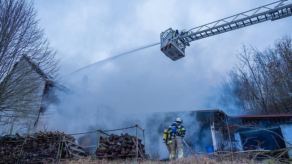 Die Feuerwehr rückt mit einem großen Aufgebot zu einer brennenden Scheune im Kreis Lichtenfels aus. Durch den Brand wird eine Frau verletzt, zehn Hasen kommen ums Leben. Der Schaden ist immens.