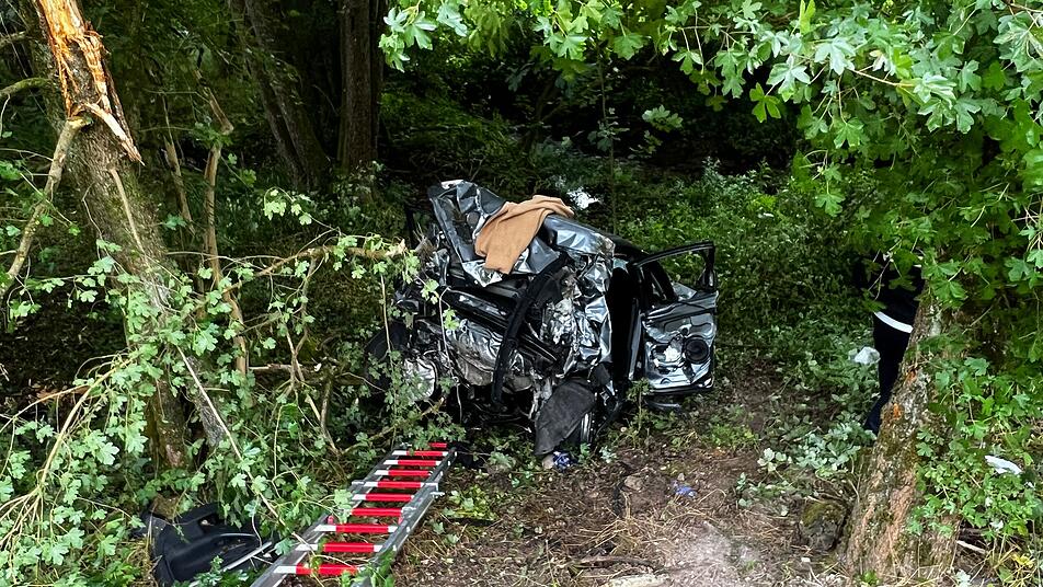 Während die 21-jährige Beifahrerin schwer verletzt überlebte, starb der 51-jährige Fahrer noch an der Unfallstelle. Die Frau wurde mit einem Rettungshubschrauber in eine Klinik gebracht.