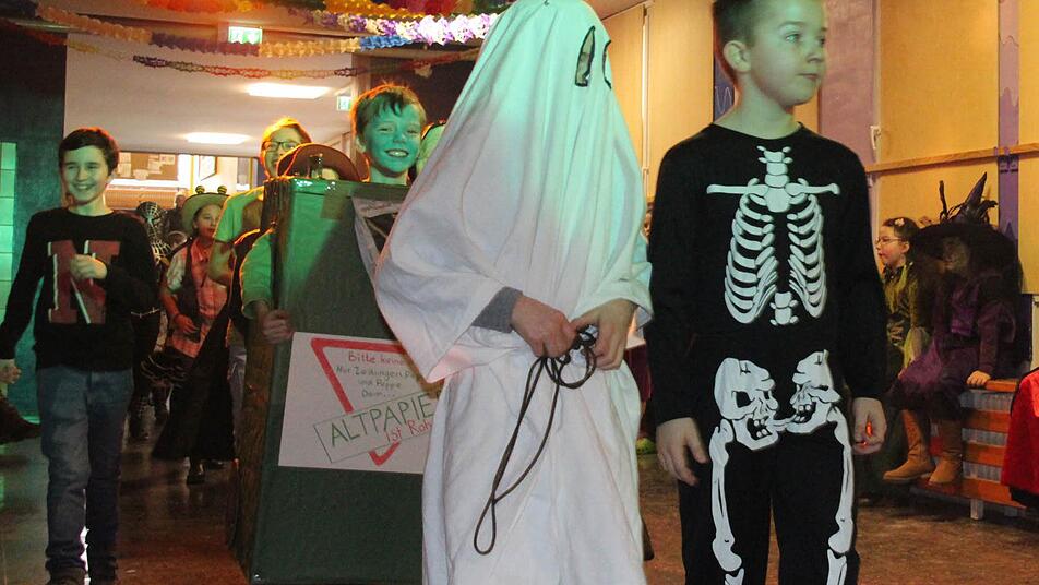 Als grüne Tonne verkleidet Gewaltfrei und sogar ökologisch korrekt ist die Verkleidung von Viertklässler Jonah Albert: Er kam als grüne Tonne. Das Kostüm hat er selbst gebastelt, zusammen mit seiner Mutter. "Wir wollten etwas selber machen und sind ganz spontan auf die grüne Tonne gekommen", erzählt er.