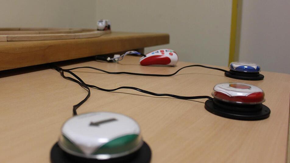 Susanne Rech stellt einen roten Buzzer, ein akustisches Signalgerät, auf den Tisch und drückt drauf. "Guten Morgen", ertönt aus dem sogenannten Bigmack, einem kleinen Computer für Behinderte. Bei dieser Form der Unterstützten Kommunikation kommt die Sprache dazu. Der Bigmack könne flexibel und unterschiedlich eingesetzt werden. Zum Beispiel im Morgenkreis, wenn sich alle gegenseitig begrüßen. Während sprechende Kinder einfach "guten Morgen" sagen, drückt der nicht-sprechende Schüler auf die rote Taste, und begrüßt so seine Mitschüler. Der "Guten Morgen"-Wunsch kann vorher individuell von Eltern oder Betreuern aufgenommen werden.