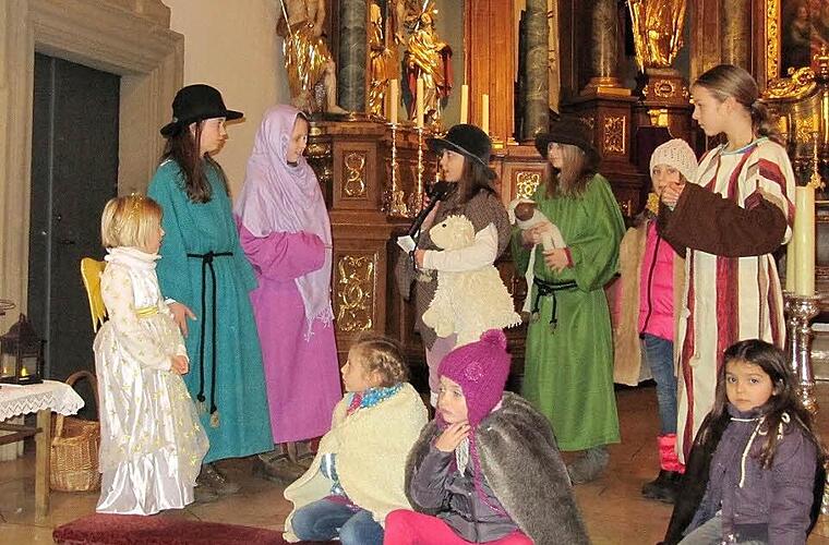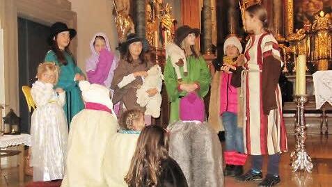 Proben seit Allerheiligen Schnell war das Stück geschrieben, freilich mit ein paar überraschenden Episoden und neuen Personen. Seit Allerheiligen proben die Akteure: 20 Kinder haben Sprechrollen, sechs Kindergartenkinder ohne Text spielen die Rolle eines Schäfchens, berichtet Sabine Scheer bei einer der Proben. Sie selbst führt "nur" Regie bei dem zirka 20 Minuten dauernden Stück, Korinna Fischer hingegen hat gleich drei Rollen: zu Beginn der Weihnachtsgeschichte, die im Anschluss an die Kindermette ist, spielt sie den Herold, dann den Josef, schließlich spricht sie das Schlusswort.