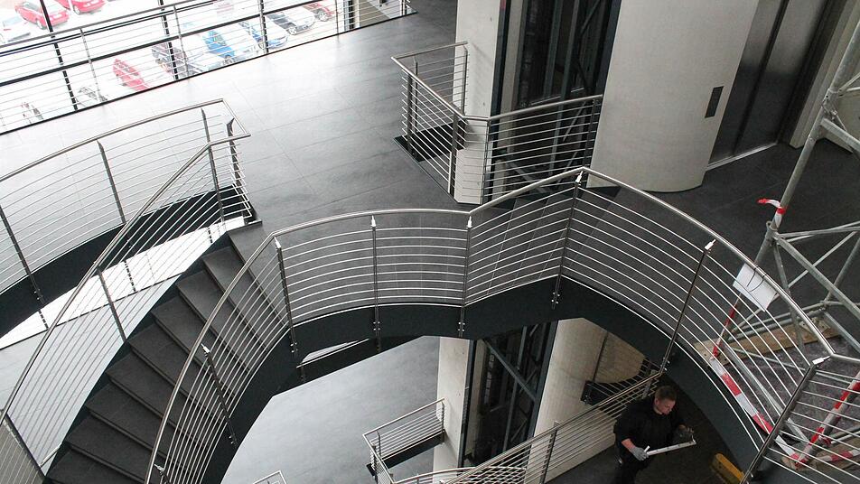 Der nackte Beton an den Wänden fühlt sich glatt an. Viel Licht dringt in das Treppenhaus, das sich über fünf Etagen erstreckt. "Klar und schlicht" nennt Geschäftsführer Peter Dechant diesen Stil, der vom Sichtbeton als prägendes Material gekennzeichnet ist. Zugleich sind dieser spezielle Beton und seine Bearbeitung die Kernkompetenz des Hoch- und Ingenieurbauers Dechant.