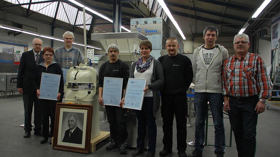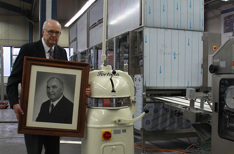 "Der Fortuna-Halbautomat war die Basis unserer Firma und vom guten Ruf der Maschine leben wir noch heute", sagt Schröder und fügt an: Die Fortuna sei "unkaputtbar" und in der Backindustrie legendär - diese Erfolgsgeschichte sei Ansporn weiter zu machen. Für die Feierstunde war der 1981 gestorbene Herbert Schröder auf einem Schwarz-Weiß-Bild neben seiner Erfindung zu sehen.