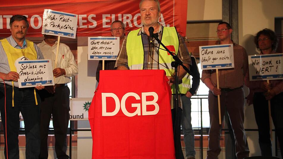 Gute Arbeit, ein soziales Europa - das sollte auch für die Brummifahrer auf den Straßen gelten, forderte Harald Kober, Betriebsratsvorsitzender von M+S Piano Express.