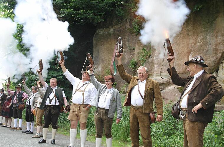 Auch die Marktzeulner Ortsvereine reihten sich in den Zug ein. Dieser wurde schon auf dem Festplatz sehnsüchtig erwartet. Und wieder krachten die Böller.