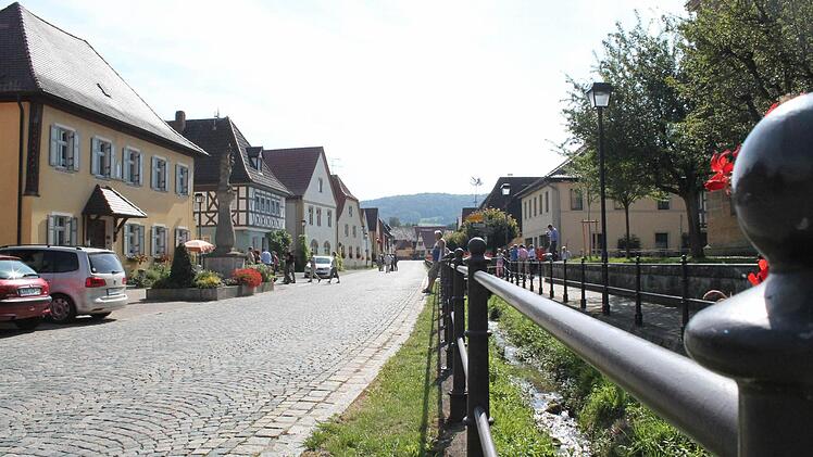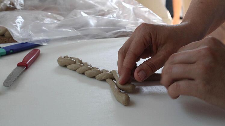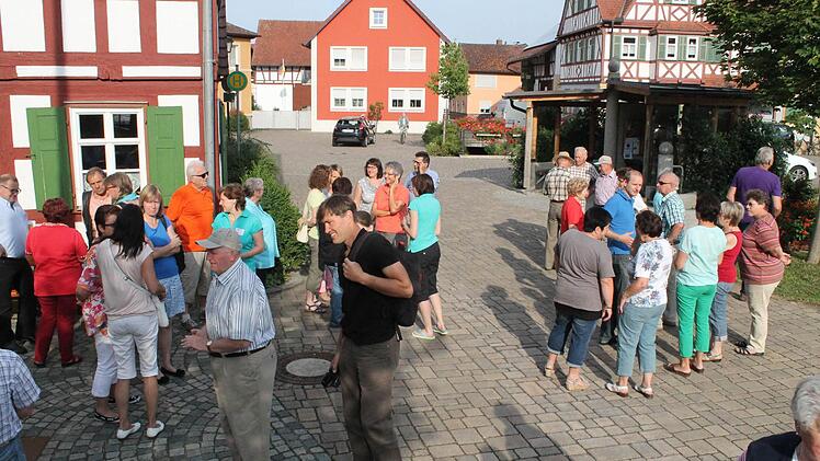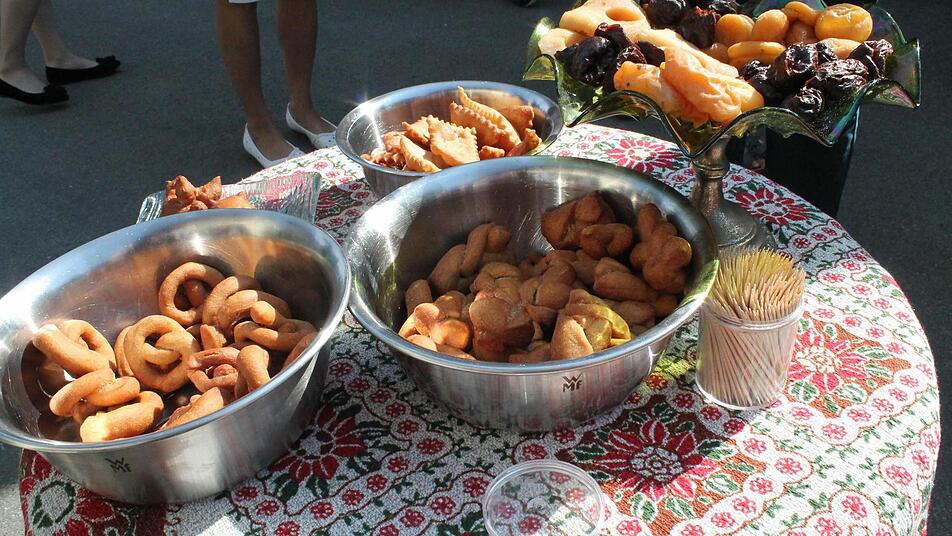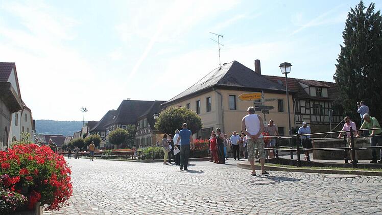 Derweil versuchen Bäuerlein und andere die Gruppe aus rund 80 Menschen zusammenzuhalten. " Es schleppt sich, die Zeit", sagte Bäuerlein. Weiter geht es durch den Ort, vorbei an vielen der 27 denkmalgeschützen Bauwerke und den schön bepflanzten Vorgärten und Fenstern. In einem Innenhof bereitet Elisabeth Schmitt ein traditionelles Kleukheimer Gebäck vor: Hündla.