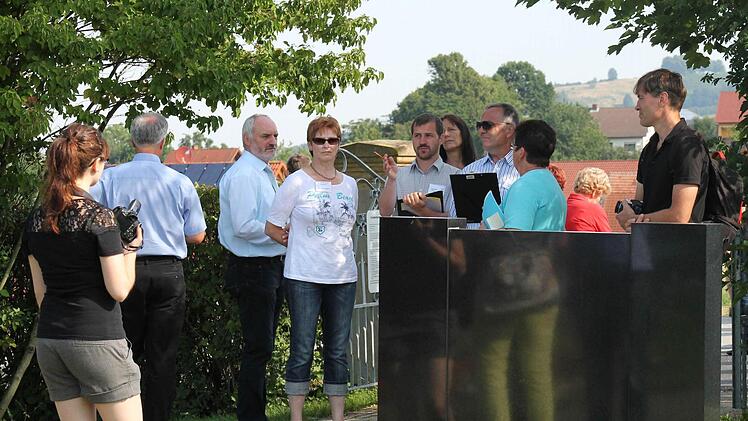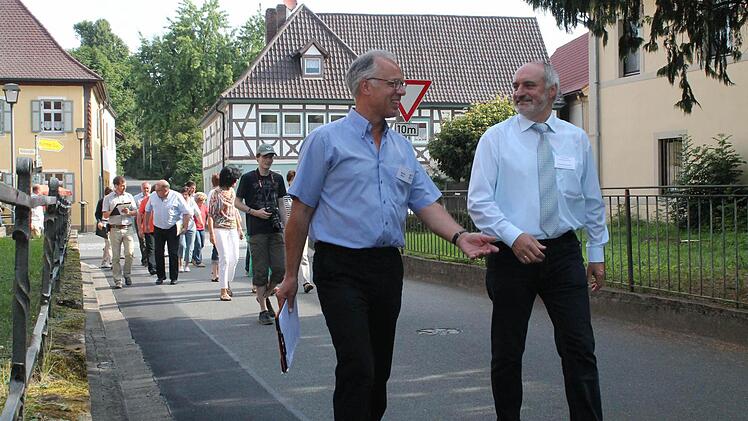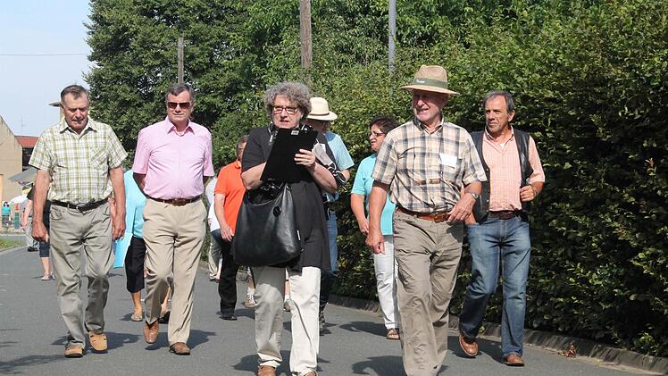 Auf dem Weg durch das Baugebiet hin zum Friedhof ließ sich Jurymitglied Martin Bach zu keiner voreiligen Einschätzung hinreißen. "Wir haben 19 Dörfer gesehen und die Entscheidung fällt noch heute Nachmittag", sagt Bach. Jurymitglieder und Bewohner kommen ins Gespräch. Bach erkundet sich nach der Nachfrage im Baugebiet. Zwei Drittel der 12 Bauplätze seien verkauft, sagt ein Mann aus dem Ort. Immer wieder machen sich die zehn Juroren Notizen.