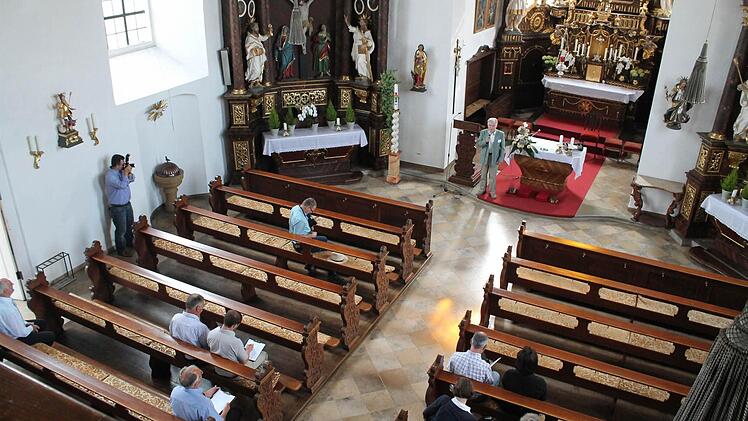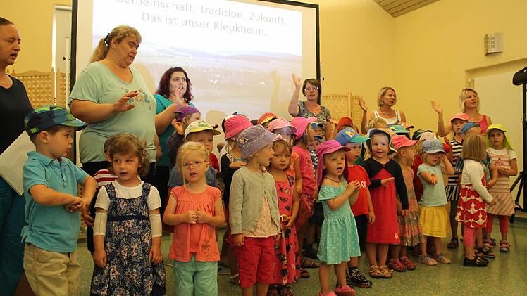 Lieder, Geschichte und Gebäck Im Pfarrsaal begrüßen die Kinder der Kita die Jury und die zahlreichen Kleukheimer mit einem extra umgedichteten Lied: "Januar, Febraur, März, April in Kleukheim steht die Uhr nicht still..." Anschließend führt Christoph Bäuerlein in einer Präsentation durch Geschichte und Vereinsleben des Ortes. Doch schon hier machte sich der Zeitfaktor bemerkbar, weshalb er einiges auslassen mussten. Als erste Station des Rundgangs steht die Kirche St. Wolfgang auf dem Programm.
