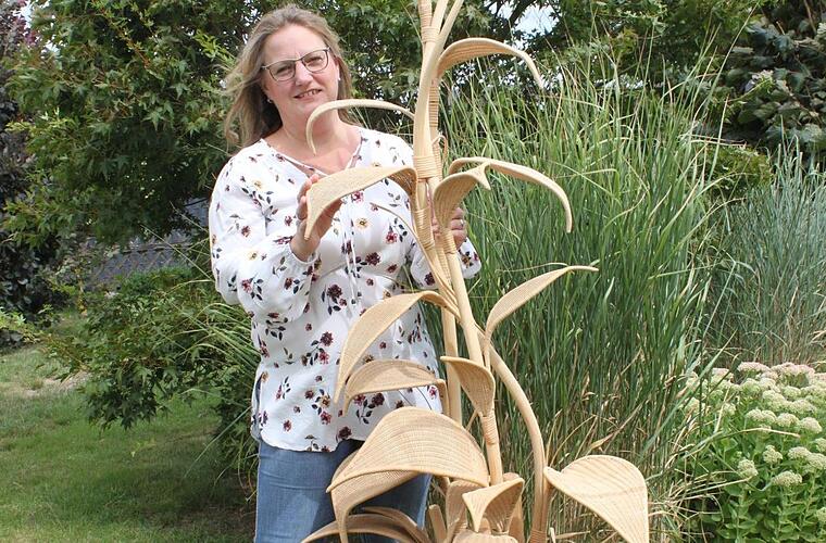 Schwer zu sagen, was ihr liebstes geflochtenes Teil sei, erklärte die Lichtenfelserin, die von 1994 bis 1996 einmal Korbstadtkönigin war. Das ist lange her und spielt heute in ihrem Leben keine große Rolle mehr. "Es war gut, aber es ist rum." Als Königin sollte doch in erster Linie die jeweils amtierende wahrgenommen werden, findet Birgit Hucke. Der 40. Korbmarkt 2019 war allerdings Anlass, zurückzublicken und an die Vorgängerinnen von Alicia I., die heute das Amt innehat, zu erinnern. Und als man sich so Gedanken über eine mögliche Jubiläumsaktion machte, da kam eben jener Flechtbaum ins Spiel. Nach dessen Vorbild entstand dann in mehreren Zusammenkünften der "Königinnenbaum", an dem sich alle "Ehemaligen" mit einem selbst geflochtenen Blatt unter Anleitung von Manfred Popp "verewigten". Der Baum wurde in der Ausstellung "40 Jahre Korbmarkt" gezeigt, bleibt in städtischer Hand und darf noch wachsen: Es ist vorgesehen, ihn von jeder neuen Korbstadtkönigin um ein Blatt samt entsprechender Namensplakette ergänzen zu lassen. Ein Stück von bleibendem Wert also. Und für Birgit Hucke wieder mal ein Anknüpfungspunkt, der sie mit dem Handwerk in Verbindung gebracht hat. Im klassischen Sinne erlernt hat sie es freilich nie, aber sie traut sich zu, etwas Geflochtenes zustande zu bringen. Keine Frage, dass der Vater dabei der schärfste Kritiker wäre. Beim Ausflechten "ihres" Blattes am "Königinnenbaum" war das nicht anders: "Da ist schon sehr drauf geguckt worden", sagt sie mit einem Schmunzeln.