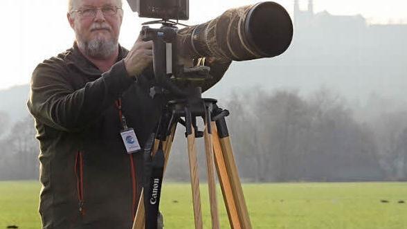 Seine Gesichtszüge wirken entspannt. An den Augen aber wird sichtbar, mit welcher Konzentration er bei der Sache ist. Wachsam schweift der Blick über Wiesen und Gewässer, fokussiert jede Bewegung. Man spürt: Der Mann, der seinen Skoda Yeti über die Flurbereinigungswege unterhalb von Banz steuert, ist in seinem Element. "Da", sagt er stolz und zeigt dabei auf eine überflutete Stelle im weiten Grün, "da drüben habe ich sie fotografiert".