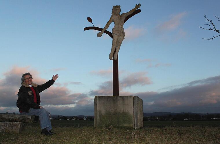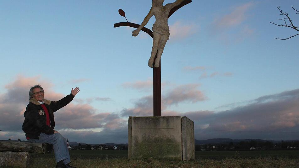 Anders am Kreuz. Nur Natur ist hier nicht. Mengesdorf ist gläubiger Katholik, und auch wenn es sich hier behaglich bis zum Veits- und Staffelberg schauen lässt, so kommt sein Blick doch nicht an Jesus vorbei. Denn dieses von Clemens Muth geformte Feldkreuz hat eine Aussage, eine Zweigeteiltheit. Eine Botschaft? Mengesdorf meint: ja. Seine Frau habe ihn darauf hingewiesen, denn sie habe im Gesicht des Gekreuzigten gelesen: Die linke Gesichtshälfte wirke gequält, der linke Arm scheine zum Boden zu deuten; die rechte Gesichtshälfte werde von befreiten Zügen umspielt, der rechte Arm deute zum Himmel. Herbert Mengesdorf ist überzeugt, dass es jedem ins Stammbuch geschrieben ist, wann der Tag der Abreise kommt. Täglich zieht es ihn zu diesem Kreuz hin. Werktags betet er dort ein Vaterunser, sonntags zwei. Zu Jahreswenden drei. Laut und vernehmlich. Weil man eben dankbar sein sollte, wenn es einem gut geht. Und weil das Leben schön ist.