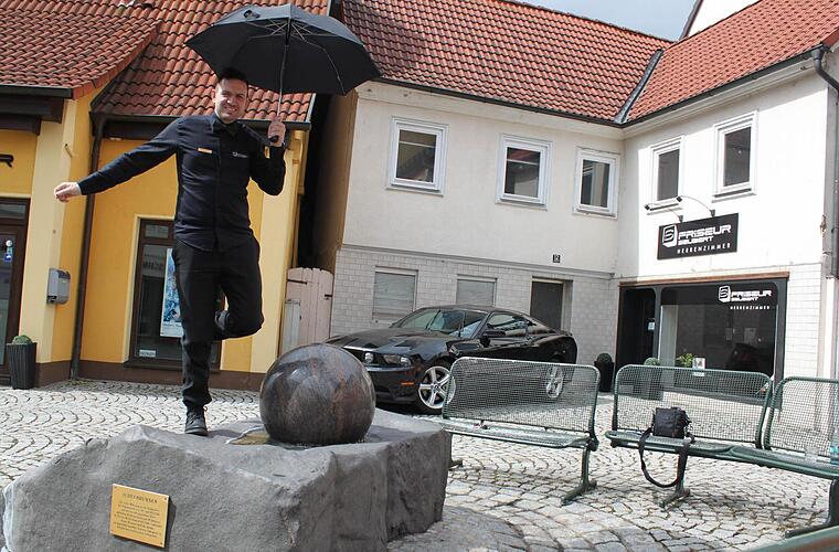 Dort, wo Markus Seubert heute sein Brot verdient, hat er sich einstmals auf das Kommende mental eingeschwungen: auf der Bank neben einer Art anthrazitfarbenen und beinahe hüfthohen Steinklecks mit Kugel sitzend und die Geschäftigkeit ringsum beobachtend, die Nase in den Wind haltend, gewissermaßen. In wenigen Tagen jährt sich zum elften Mal dieses Ereignis, für das sich der Lichtenfelser einen ganzen Tag Zeit nahm: am Brunnen sitzen, in sich hinein hörend und auf diese ungewöhnliche Weise eine Standort-Analyse betreibend. Seuberts Lieblingsplatz ist der Brunnen in der Badgasse.