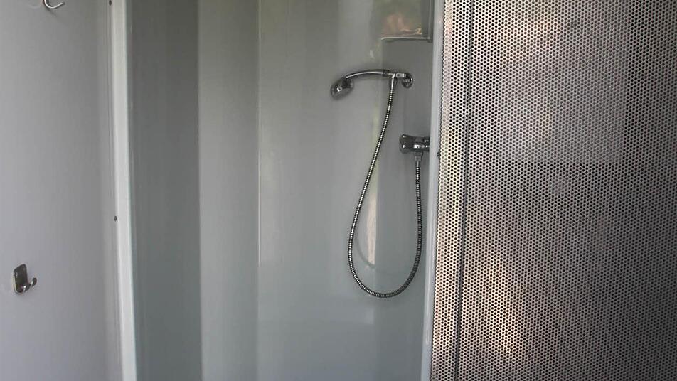 Infrastruktur: Toiletten und Duschen im Container; nicht schön anzusehen, aber zweckmäßig und bei unserem Besuch auch sauber.