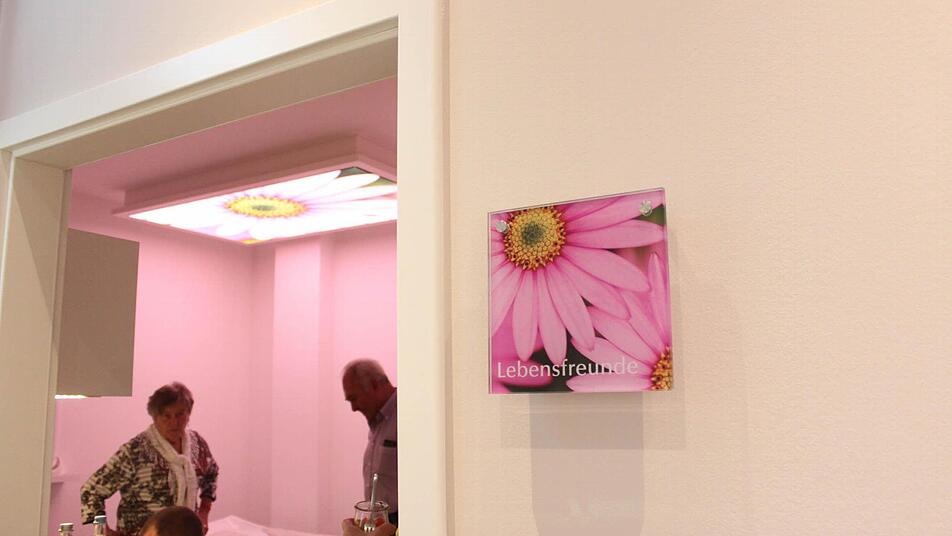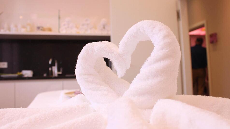 An den Türen der Behandlungsräume hängen Bilder von Pflanzen, darin stehen Wörter wie Harmonie. An der Decke des Raumes finden sich diese in einem großen Bild wieder. Spa-Managerin Müller erklärt: Es seien alles Pflanzen, die in der Region vorkämen. Einige Gäste ließen sich in einem Raum die Schwebeliege erklären, andere kamen bei Snacks und alkoholfreien Cocktails mit Aloe Vera ins Gespräch. Nach der Eröffnungsfeier wurde geputzt, denn ab 16 Uhr startete der reguläre Betrieb, ohne Schorsch, lange Reden und Kleidung.