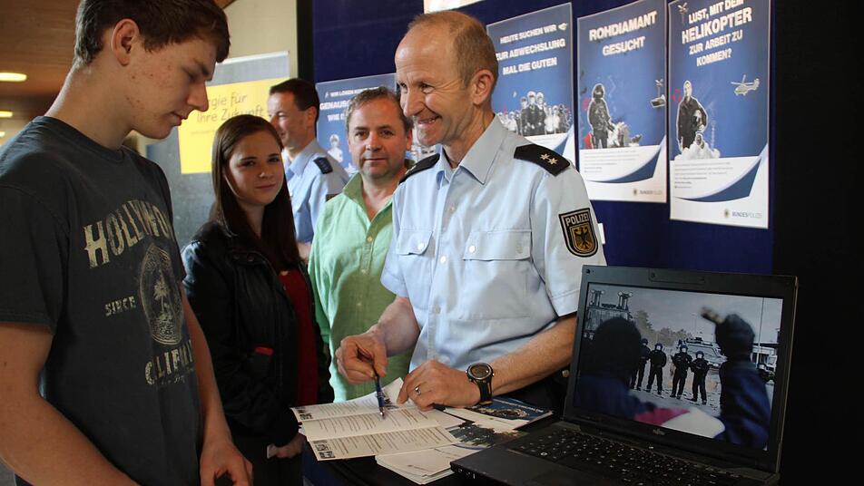 Fähigkeiten und Voraussetzungen Ein praxisorientiertes Umfeld ermöglichte einen tieferen Einblick in die einzelnen Berufsfelder. Dabei erhielten die jungen Leute nicht nur eine Vielzahl von Informationen, sondern erfuhren auch, ob sich der Wunschberuf mit den persönlichen Fähigkeiten und Voraussetzungen in Einklang bringen lässt. Niklas Bauer möchte seine Berufslaufbahn gerne bei der Polizei starten. "Ich kann nicht im Büro sitzen", sagt er. Über die notwendigen Voraussetzungen, die der Unnersdorfer für eine Ausbildung bei der Polizei mitbringen muss, informiert Stefan Kunz, Einstellungsberater bei der Bundespolizei. Vater Michael Bauer ist an der beruflichen Zukunft seines Sohnes interessiert, deshalb begleitet er ihn auch. Ihm gefällt das umfassende Angebot und dass der Messetermin an einem Samstag ist.