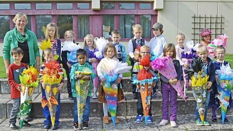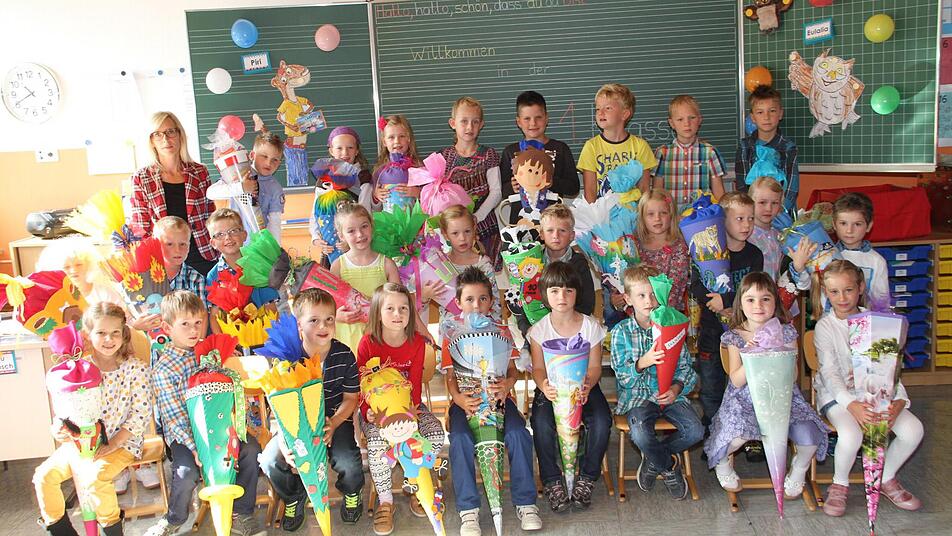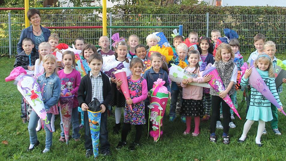 "Lobt eure Kinder", gab sie den Eltern mit auf den Weg. Und wenn sie ihre Kinder zur Selbstständigkeit erzögen, dann würden diese in Mathematik erfolgreicher. Dies sei wissenschaftlich erwiesen. Schließlich stellen sich die 24 Erstklässler in Zweierreihen auf und laufen fröhlich mit ihrer Lehrerin Sandra Hornfischer vom Stadtschloss zur Schule, um die erste Unterrichtsstunde zu erleben. In der Grundschule Seubelsdorf, die zur Lichtenfelser Grundschule am Markt gehört, ist die erste Klasse sehr groß: Für 27 Kinder beginnt hier ein neuer Lebensabschnitt. Nach dem Gottesdienst begrüßt Konrektorin Claudia Lieb die vielen Erstklässler und ihre Eltern mit herzlichen Worten. Im Schulhaus vergleichen die 14 Jungen und 13 Mädchen stolz ihre prächtigen Schultüten. Unübersehbar: Max ist ein Fußballfan. Glitzerdrachen und der Indianer Yakarai, Dinosaurier und Prinzessinnen schmücken die Zuckertüten. Dann beginnt Lehrerin Monika Beifuß mit dem Unterricht. Auf den hat sich Jomar am meisten gefreut.